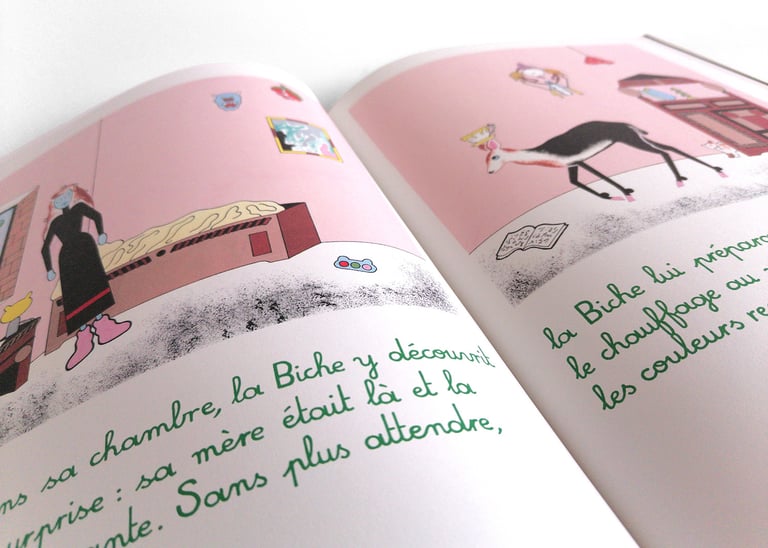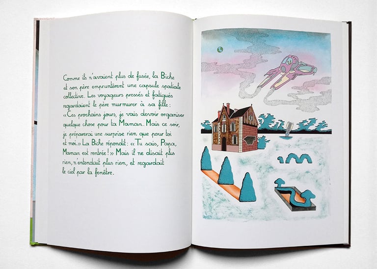 La Biche vit avec ses parents sur une station spatiale proche de la Terre. Un jour, Maman, qui est ingénieure en chauffage cosmique, doit partir faire un dépannage en fusée. Juste avant de décoller, elle promet à la Biche de lui rapporter des étoiles. Mais le lendemain, Papa annonce la terrible nouvelle: Maman a attrapé froid et elle ne reviendra pas… Pourtant, lorsque la Biche se rend dans sa chambre, une surprise l’attend : Maman est bien là avec les étoiles promises, mais elle a l’air congelée, plus tout à fait la même. La Biche essaie de prévenir Papa, mais tout à son chagrin, celui-ci semble ne pas se rendre compte que Maman est revenue…